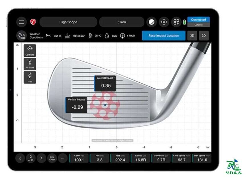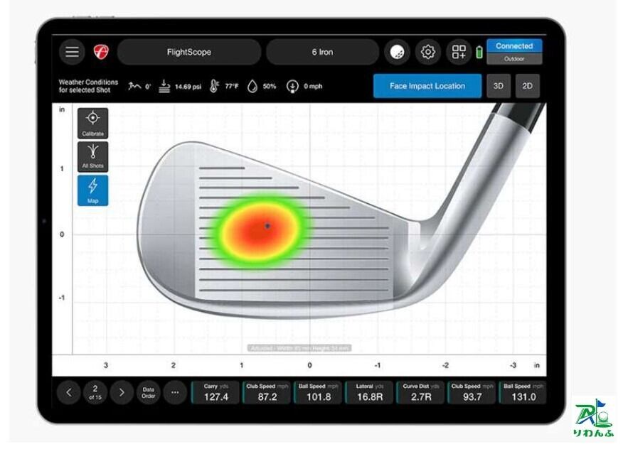 フェイスインパクトの正確な位置を表示・分析し、ウェッジ、アイアン、ウッドの正確性と一貫性を高めることができます。フェイスインパクトとショットデータ、ビデオを比較し、パフォーマンスを向上させることができます。